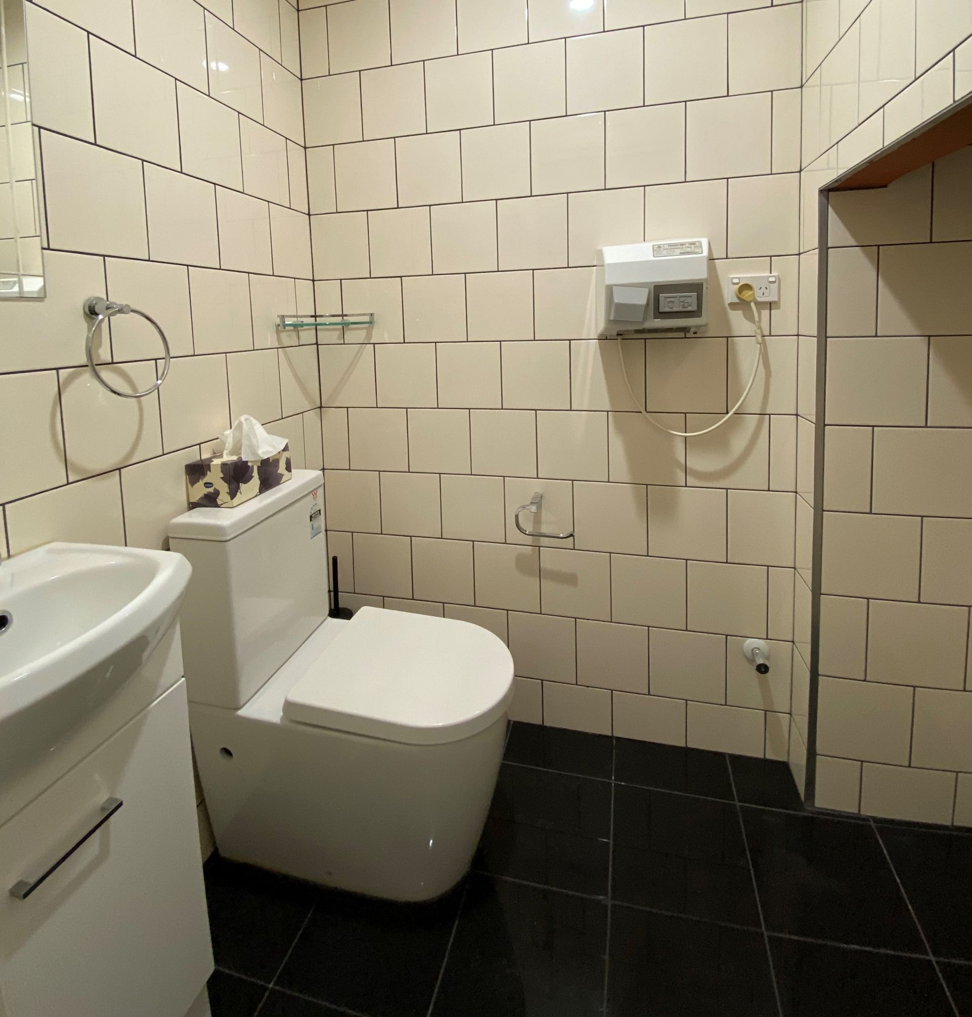 Kitchen and bathrooms are modern and have installed hand dryers.