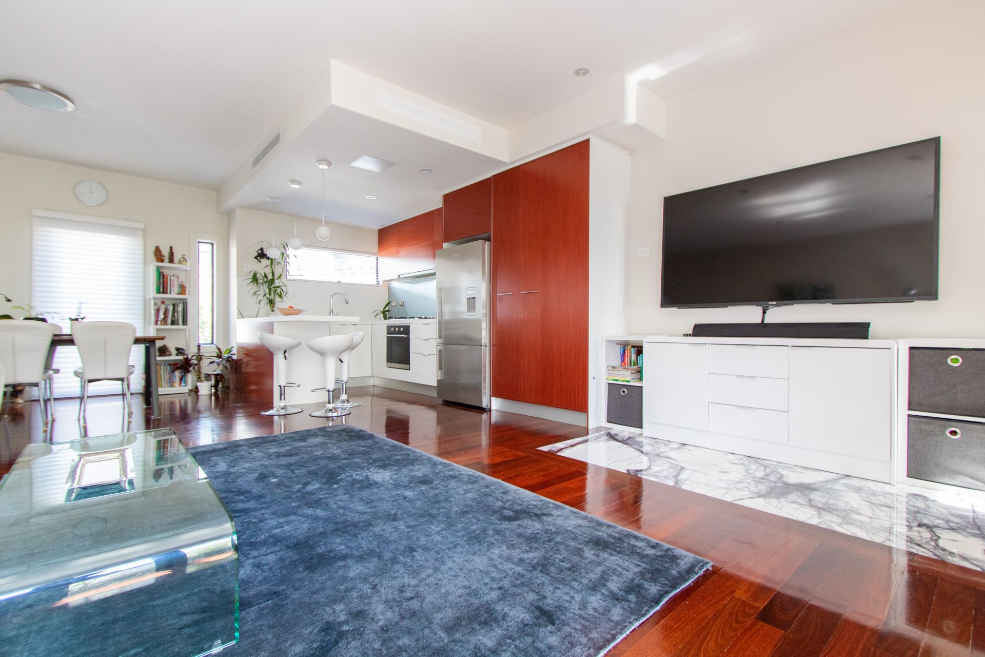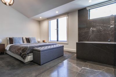 This amazingly chic townhouse is uniquely designed and offers a New York Loft lifestyle. Cleverley designed to achieve optimal space and enjoyment out of every floor this tri level property consists of 3 bedrooms and 3 bathrooms. Enter through the front security door or through the garage to a spacious foyer and bottom level bedroom, this space could also be suitable for a home office. Venture through upstairs to an open plan kitchen / dining / family area luxury bathroom and outdoor balcony, the top level is unique and consists of two bedrooms with the master bedroom and luxury hotel resort style ensuite.